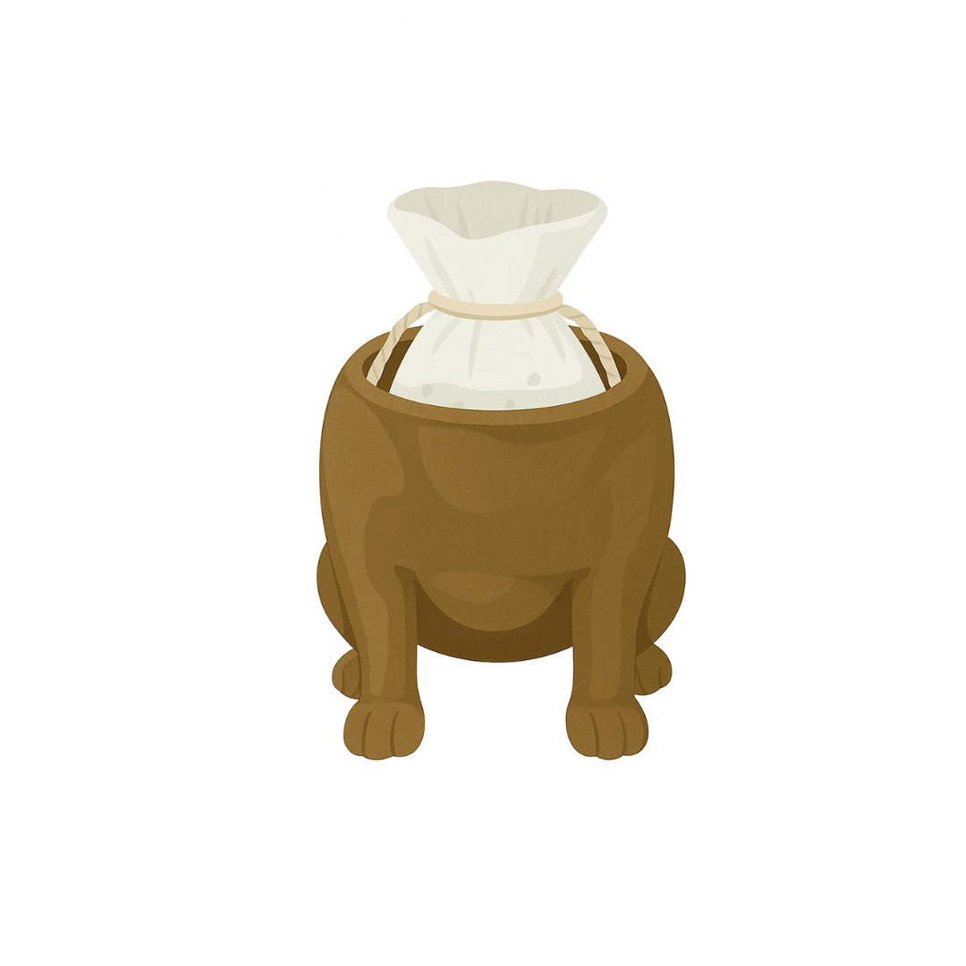 Open the urn and place the cotton bag inside its body. Leave the bag open and take a quiet pause — you may light the candle, play music, or whisper a few words of remembrance as you begin this tender ritual.